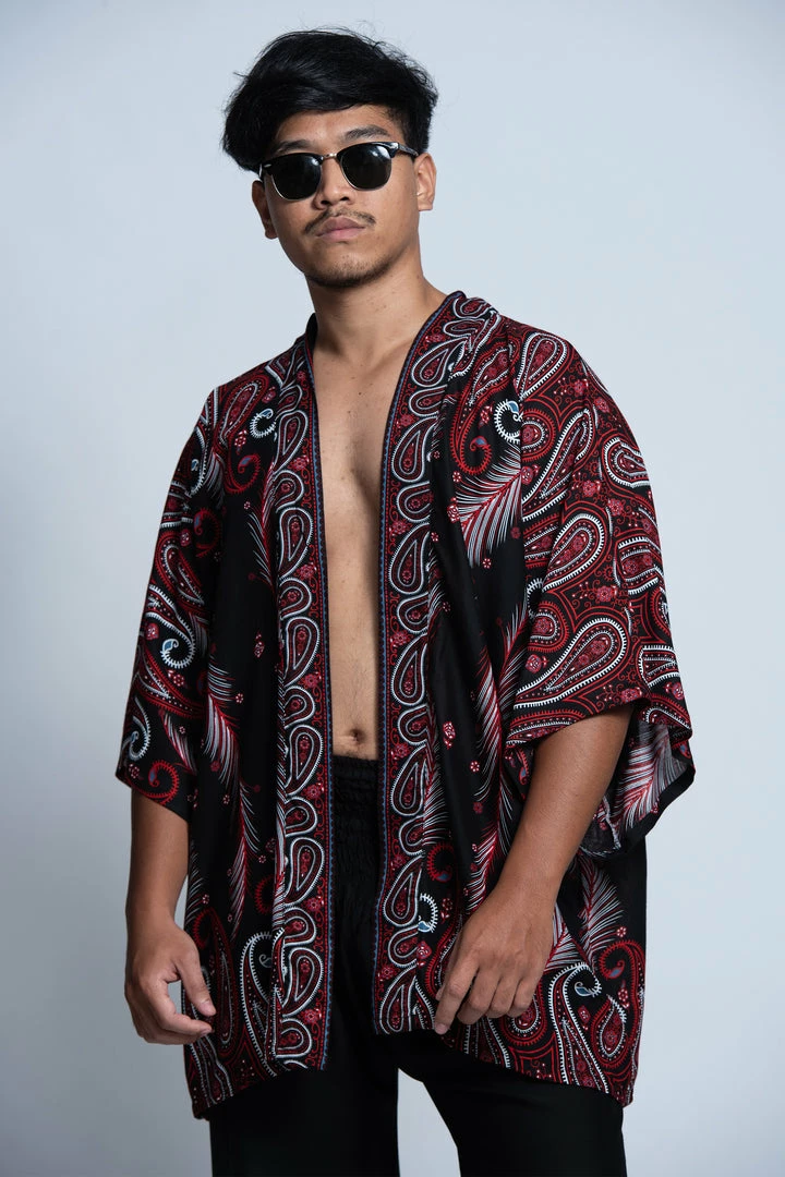 Soft flowy all-around marvelous Kimono Cardigan featuring beautiful electric funky pattern made with Thai rayon fabric.