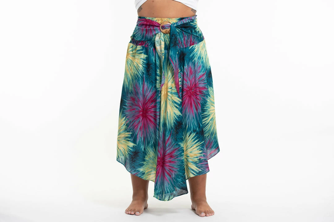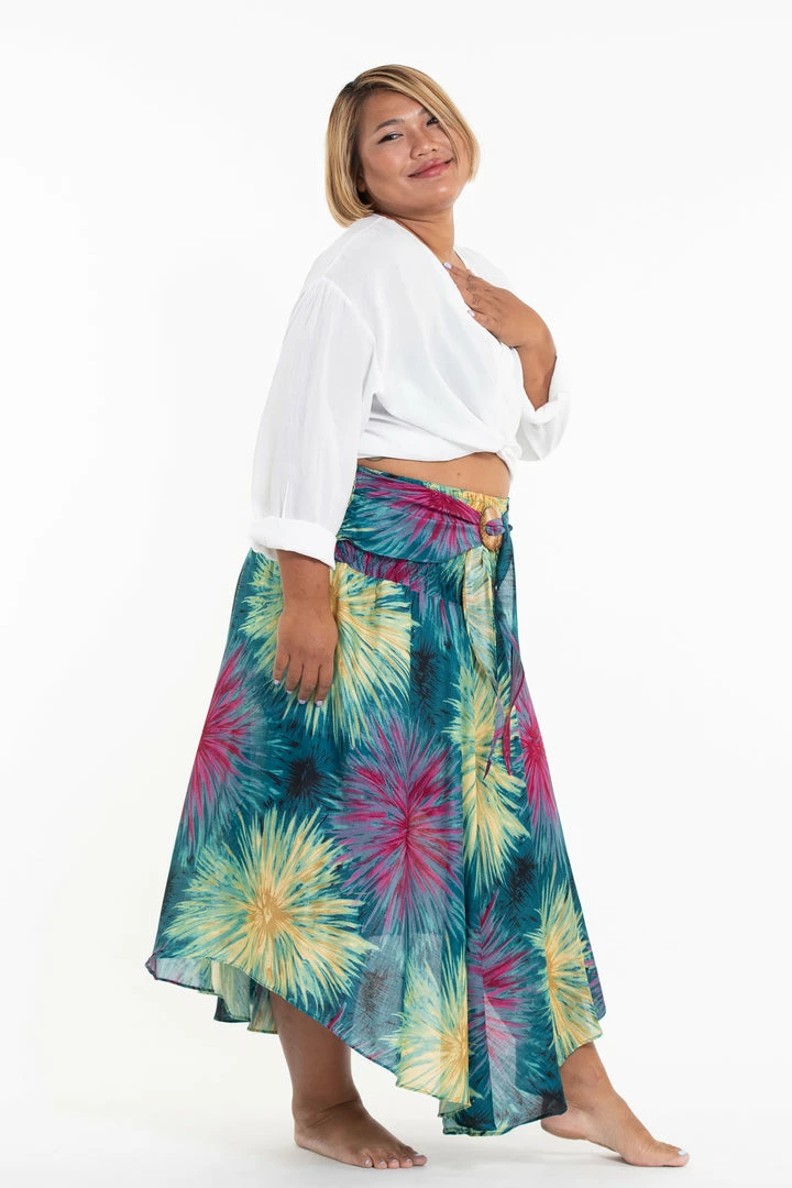 Have a beautiful look with our flowwy rayon handkerchief midi skirt with elastic back waistband and a coconut shell buckle belt.