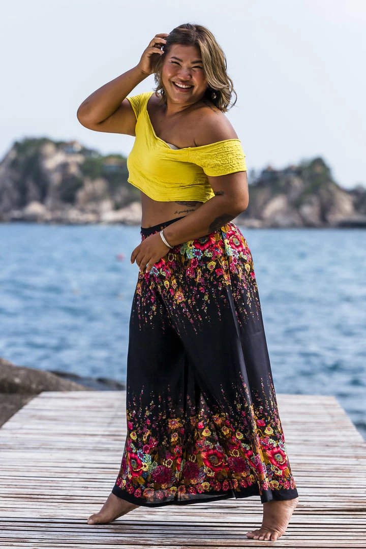 Beautiful Plus Size Wide Leg Palazzo Style Harem Pants with the elastic back waistband.