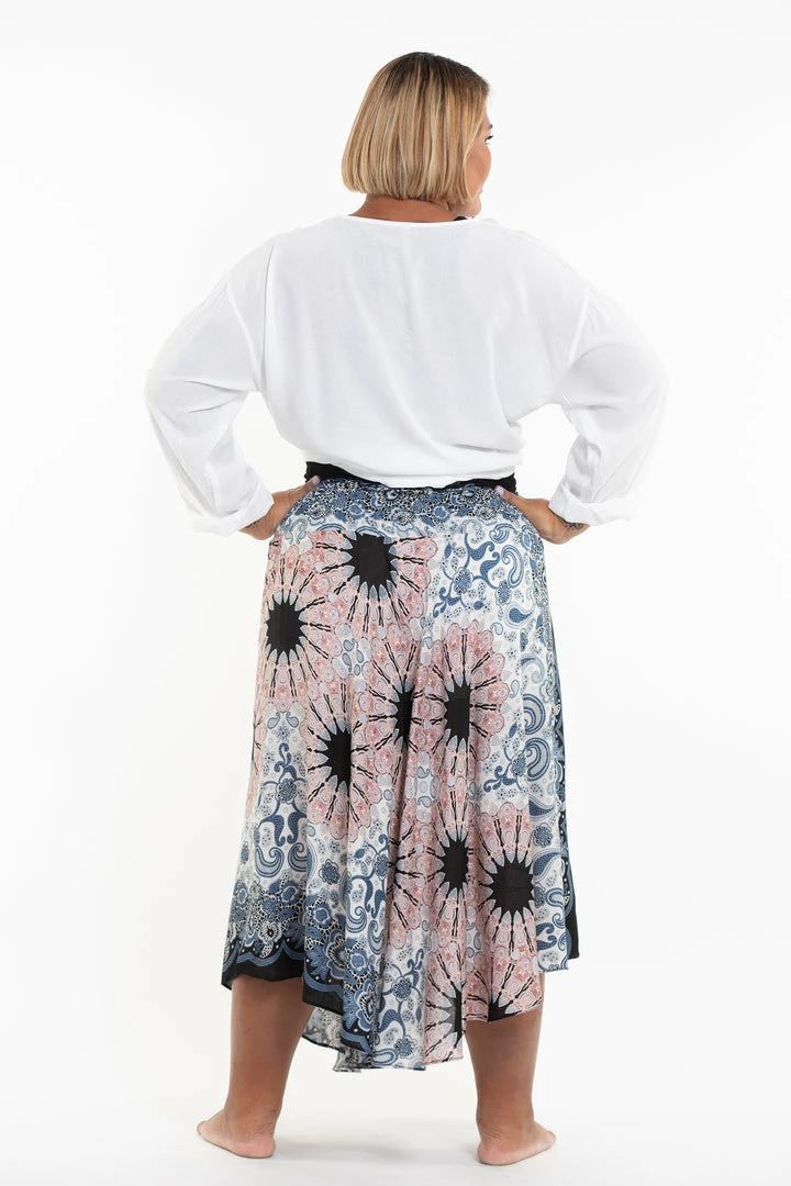 Have a beautiful look with our flowwy rayon handkerchief midi skirt with elastic back waistband and a coconut shell buckle belt.
