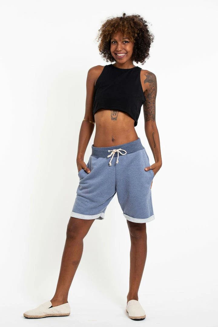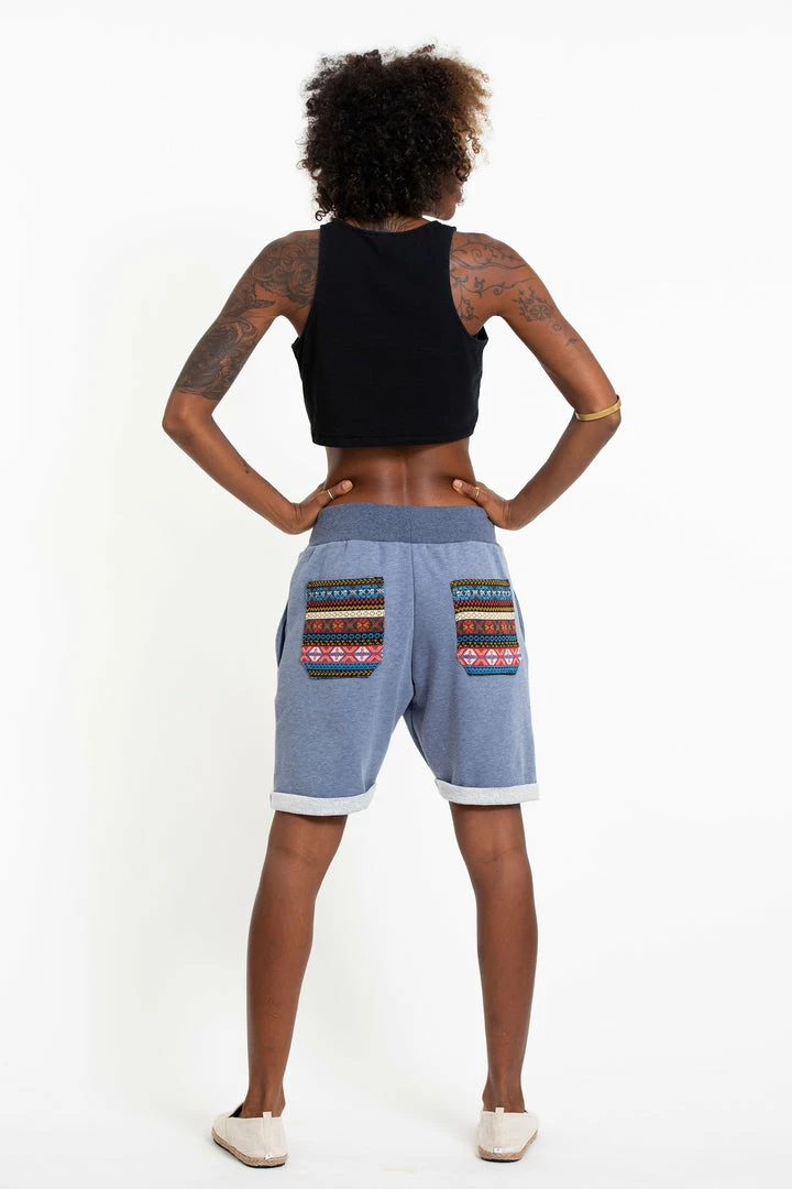 HaremPants.com Women’s Terry Shorts With Aztec Pockets In Light Blue