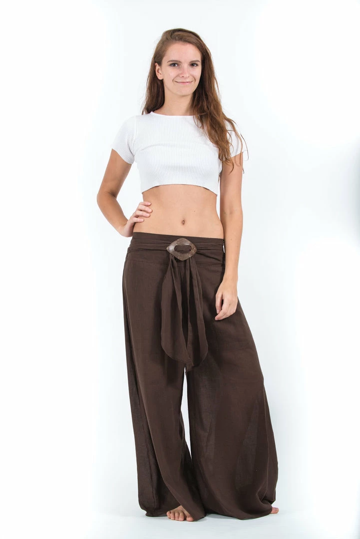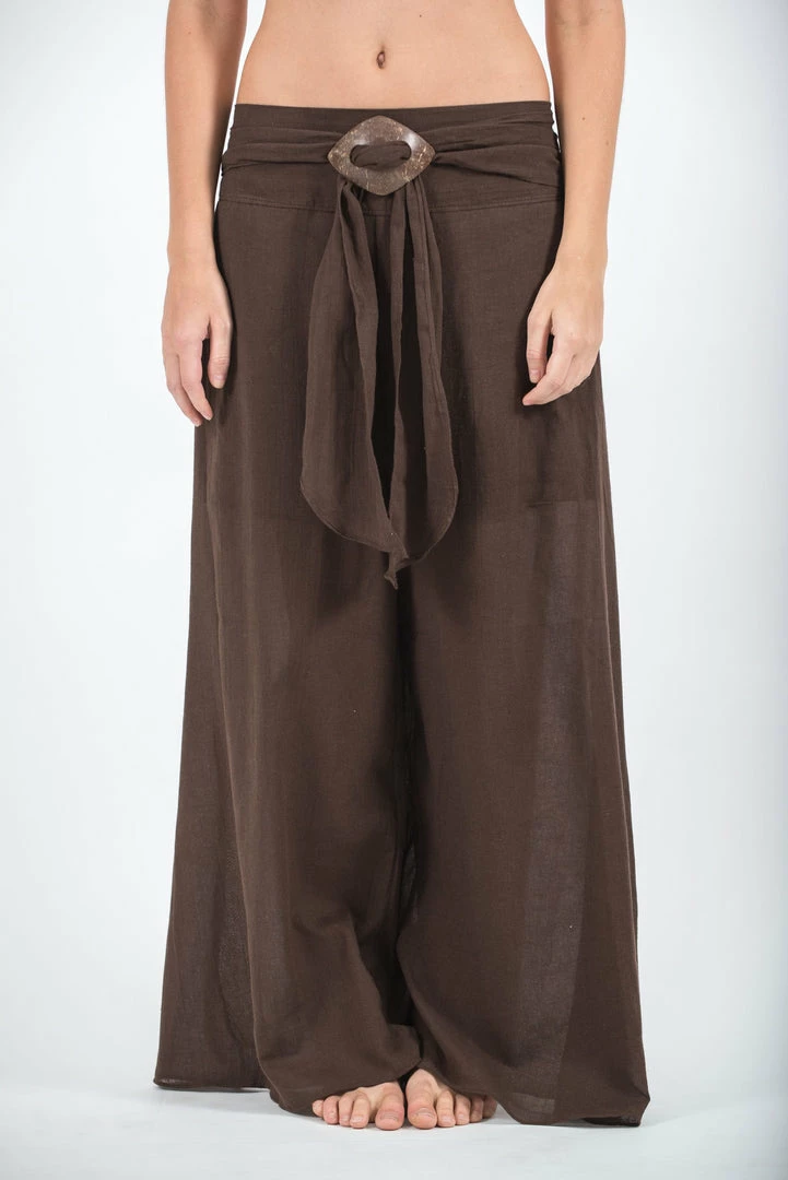 Super soft organic cotton wide-leg Thai style palazzo pants with elastic back waistband.