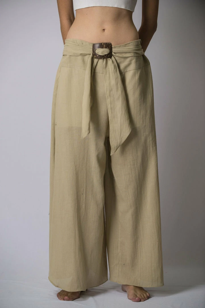 Super soft organic cotton wide-leg Thai style palazzo pants with elastic back waistband.