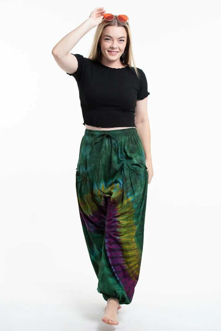 HaremPants.com Women’s Tie Dye Cotton Women Harem Pants In Green Yellow