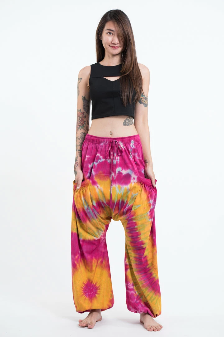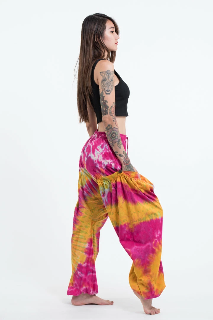 HaremPants.com Women’s Tie Dye Cotton Women Harem Pants In Pink Yellow