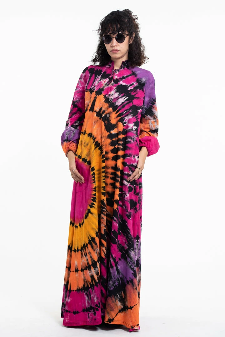 Have a beautiful look with our comfy cotton tie dye long sleeve maxi dress.